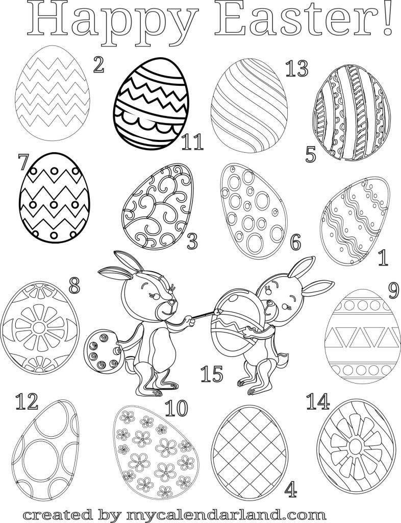 Let your inner artist out with Easter bunnies and fifteen eggs to color!