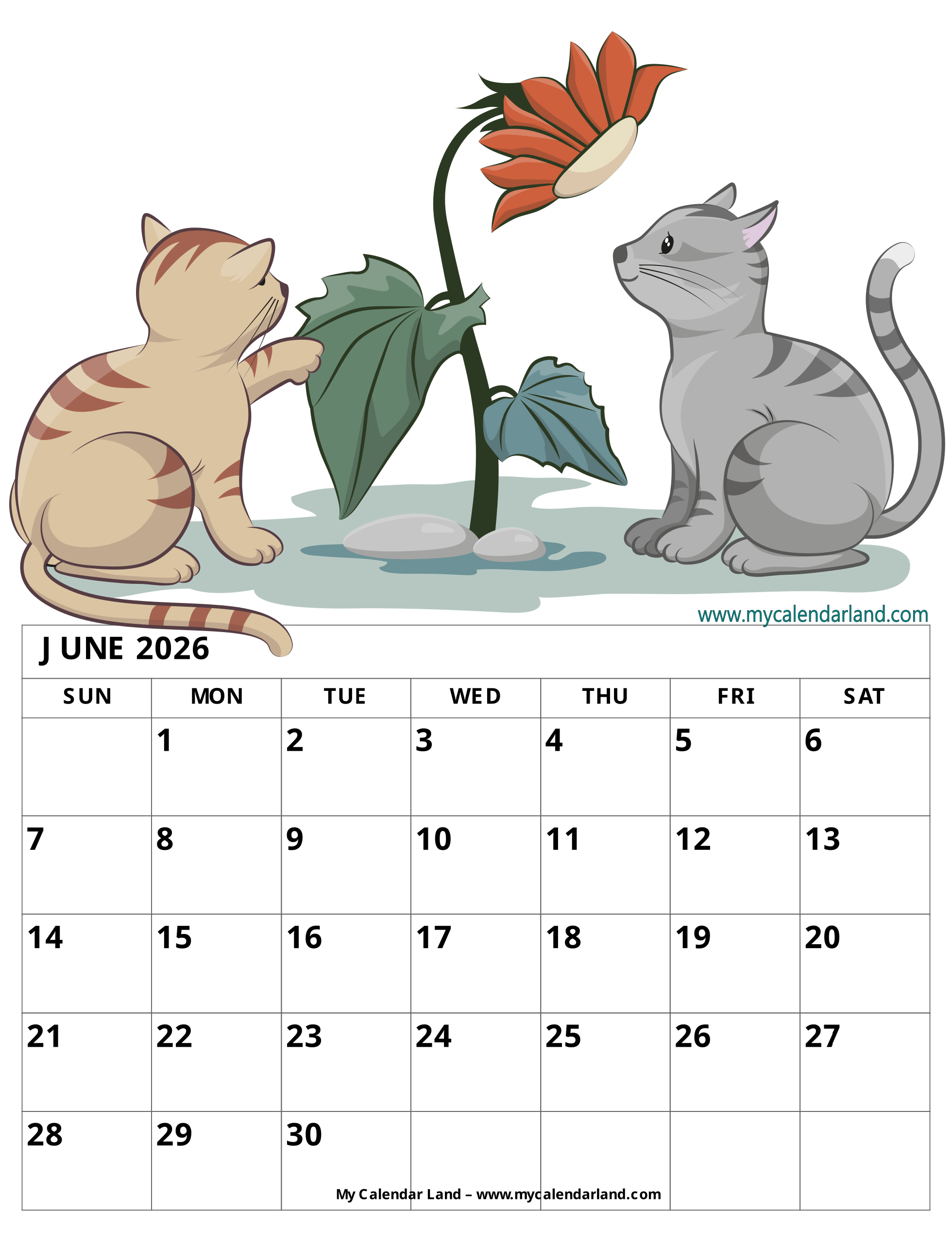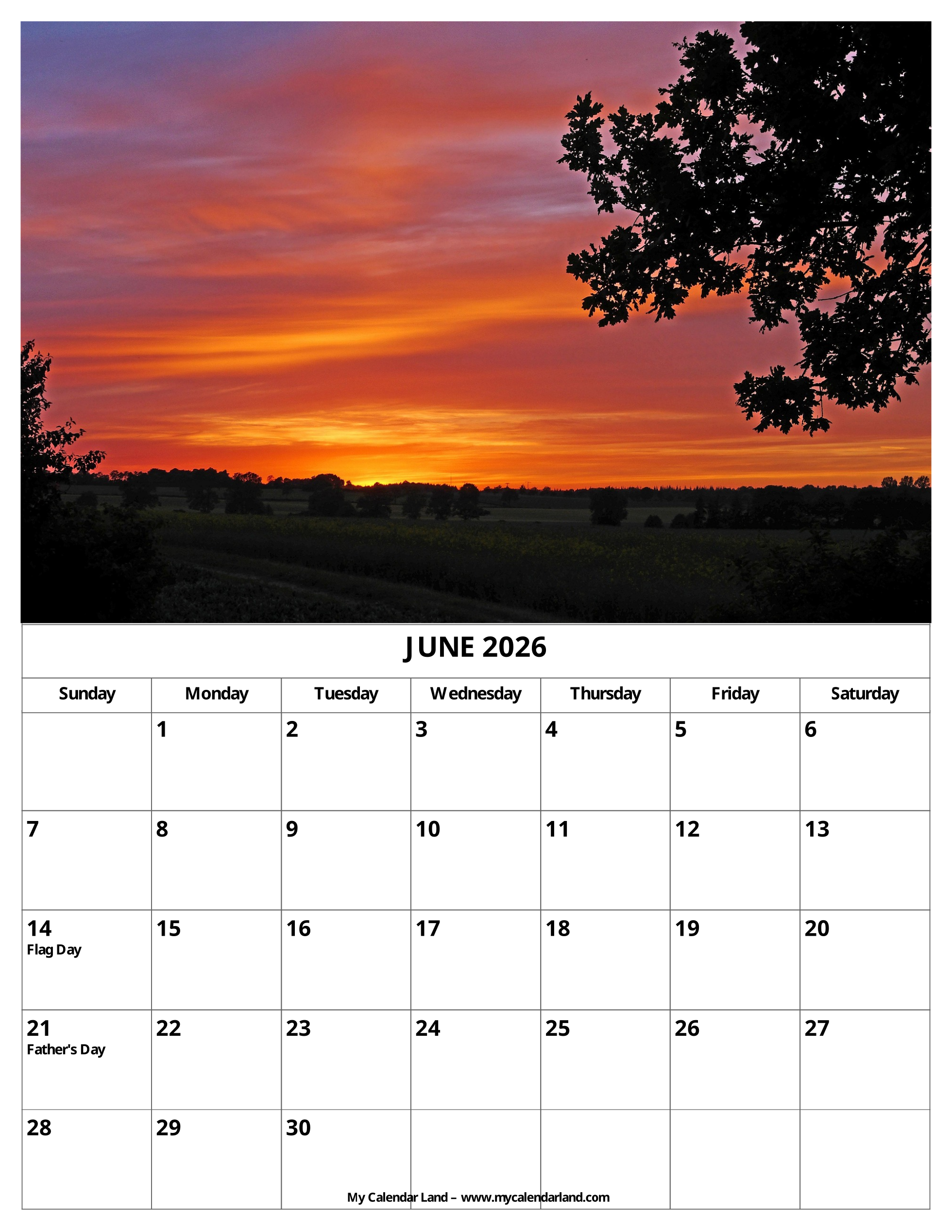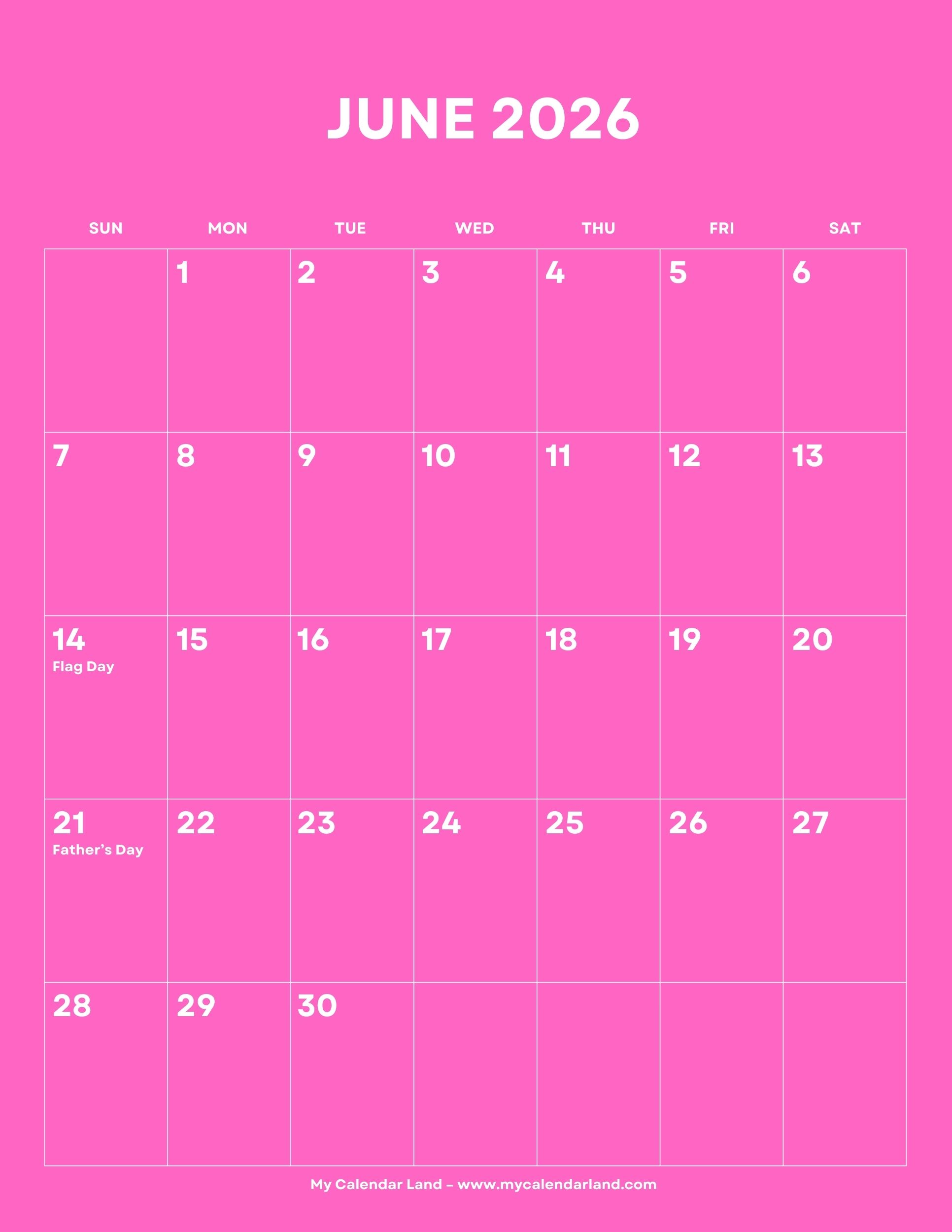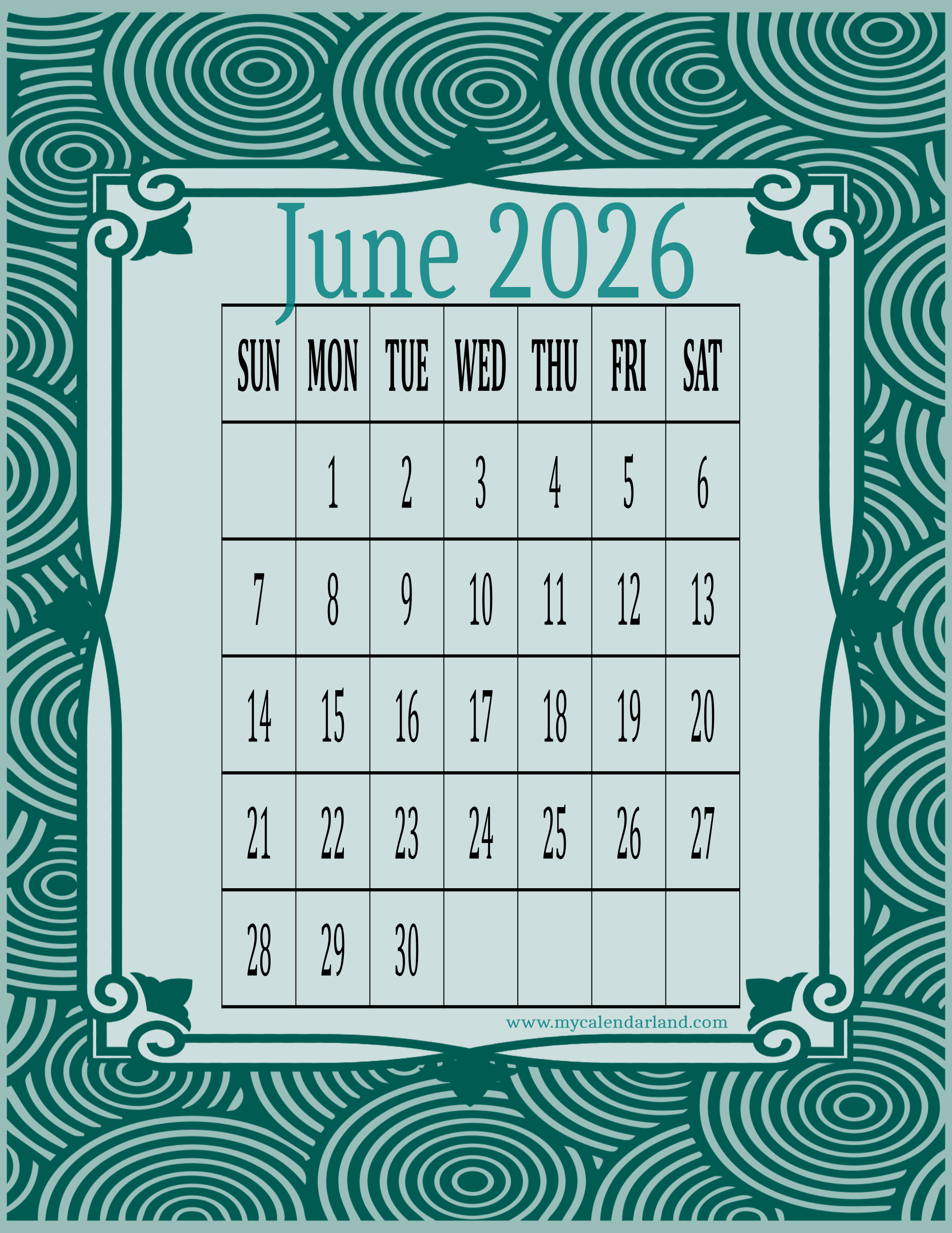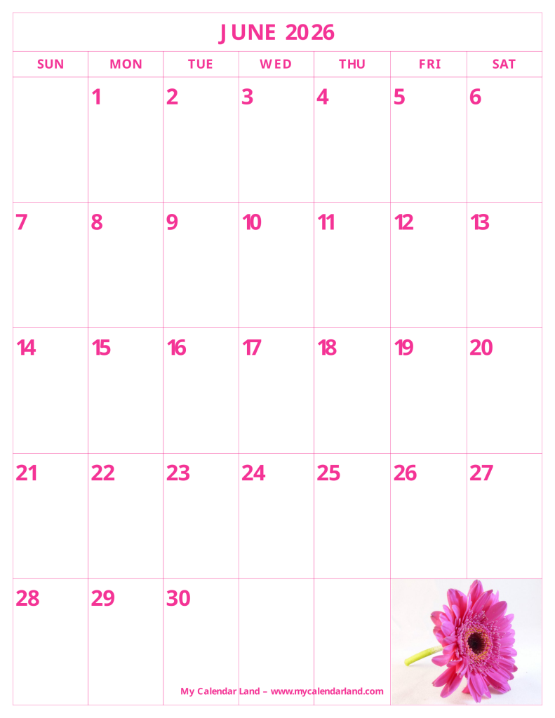 June is also the favorite month of children because it is when the school ends and holidays start. To help you at better planning of your time, we prepared different printable calendars for June 2026. They are all completely free for your personal use.