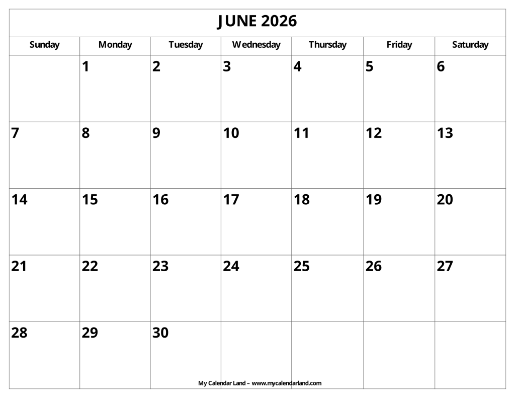 Pick Your Favorite Blank June 2026 Calendar