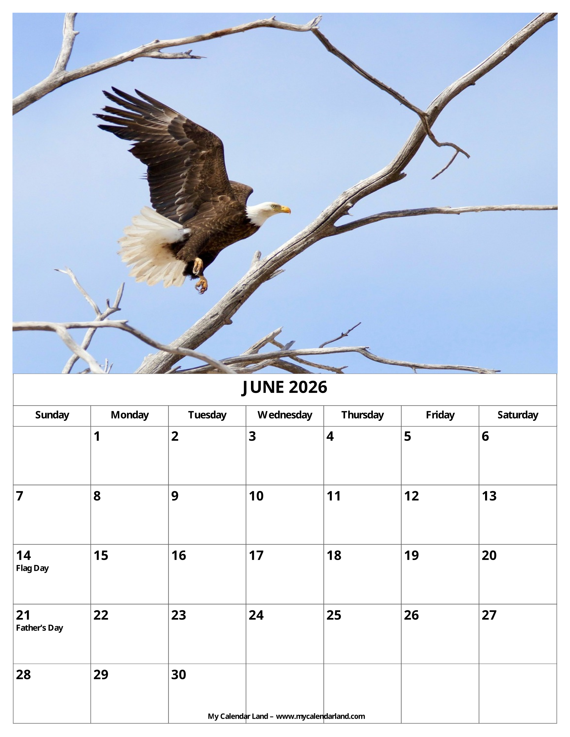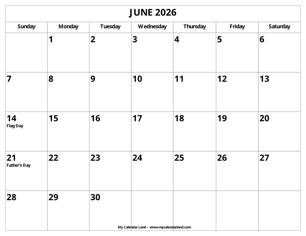 Next set of free blank calendars is all ready to print. We prepared them in landscape and portrait formats, with and without holidays. A lot of blank space to have a chance to write all important things down. There is always something important going on in June, right?