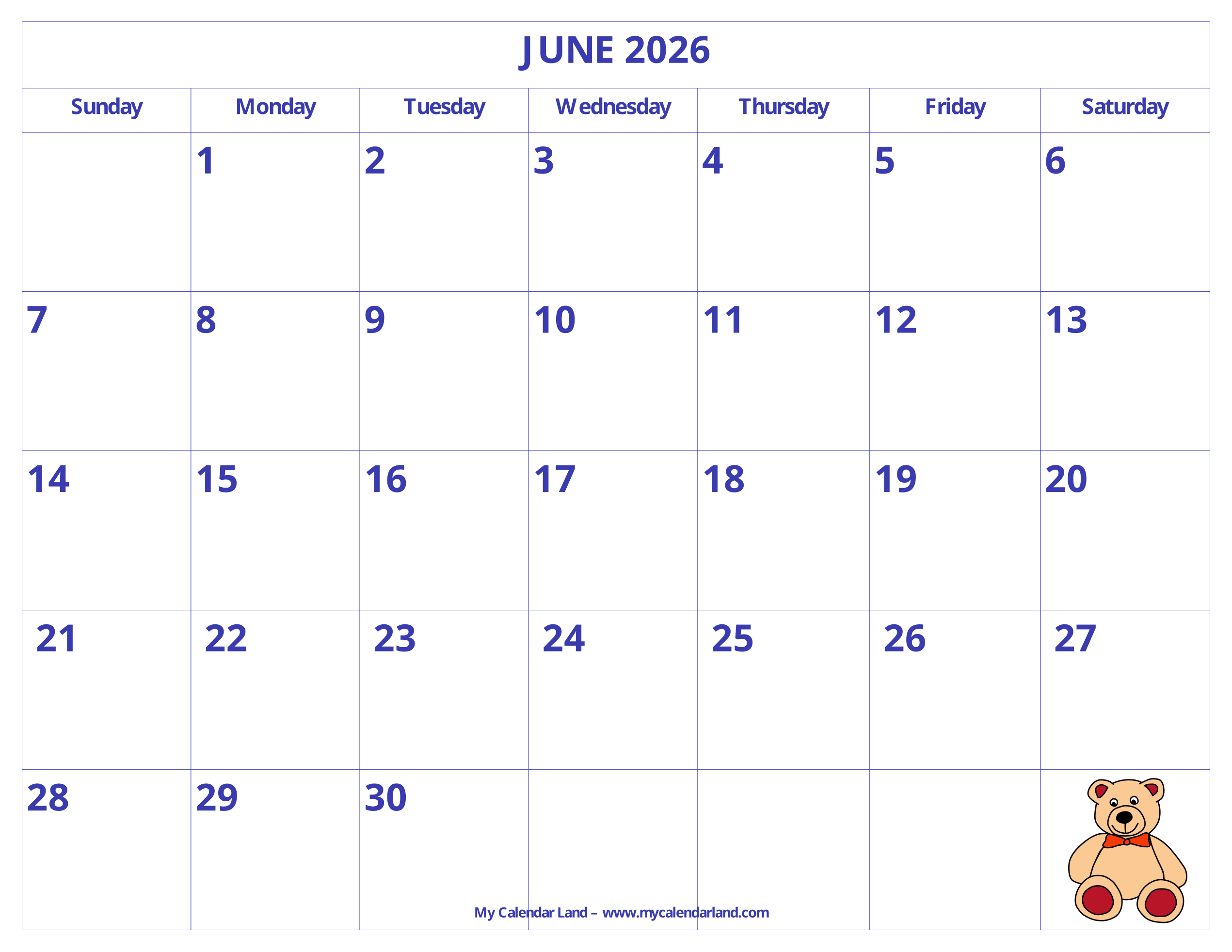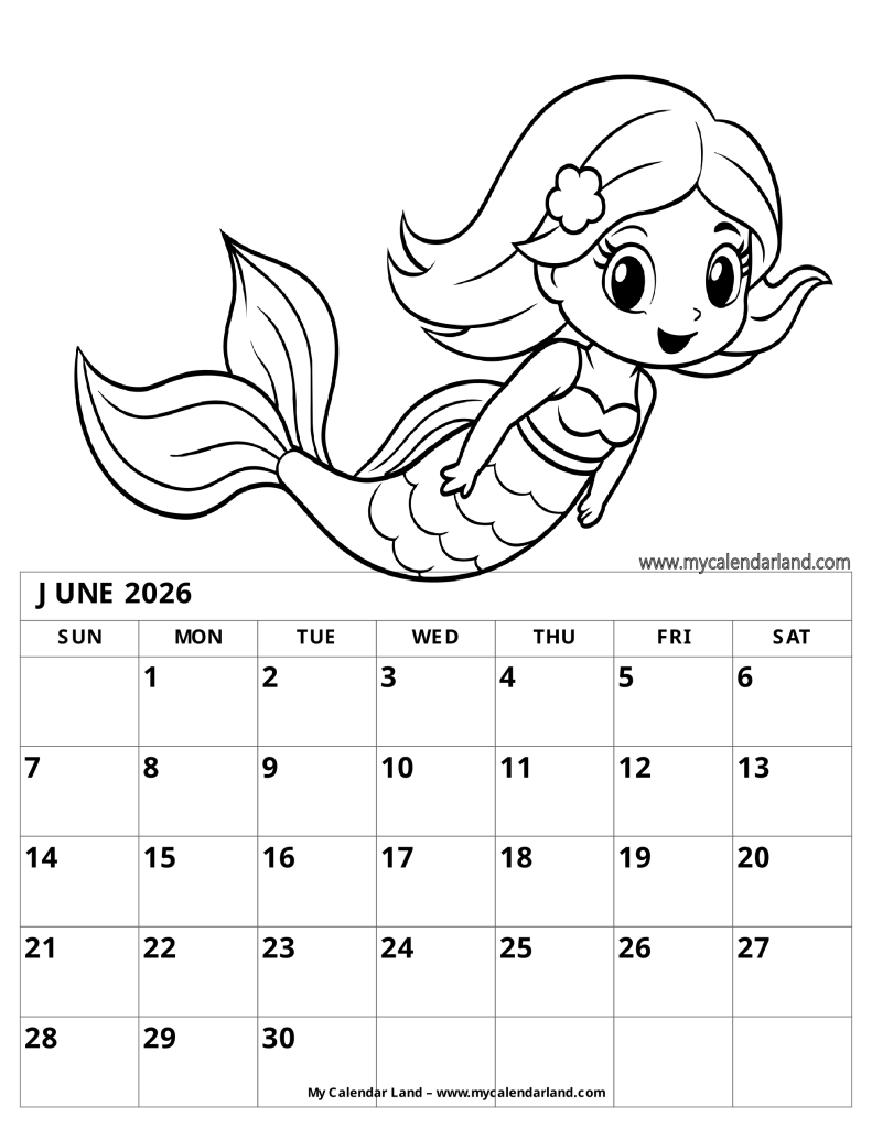 Free Printable Calendar For Kids (June 2026)