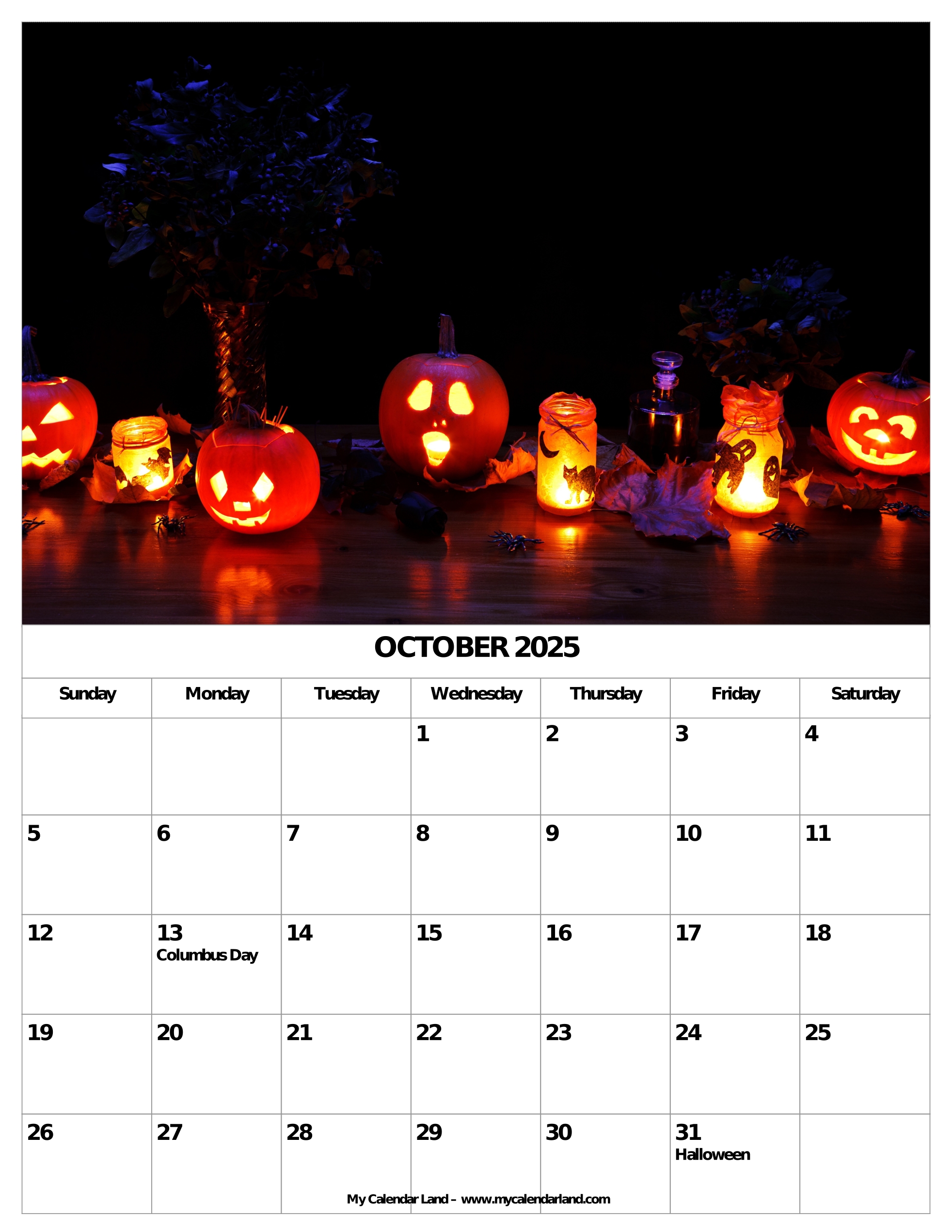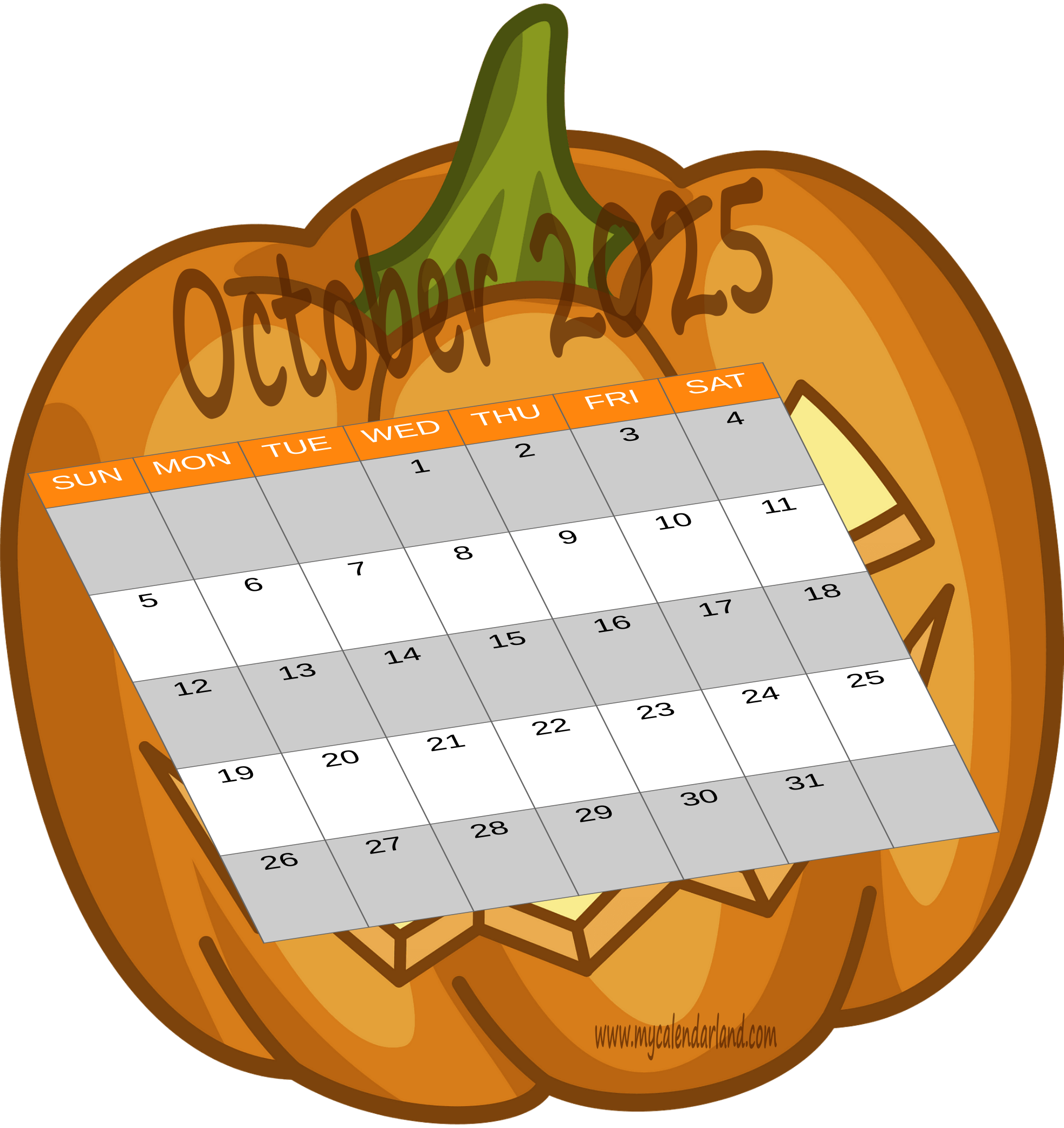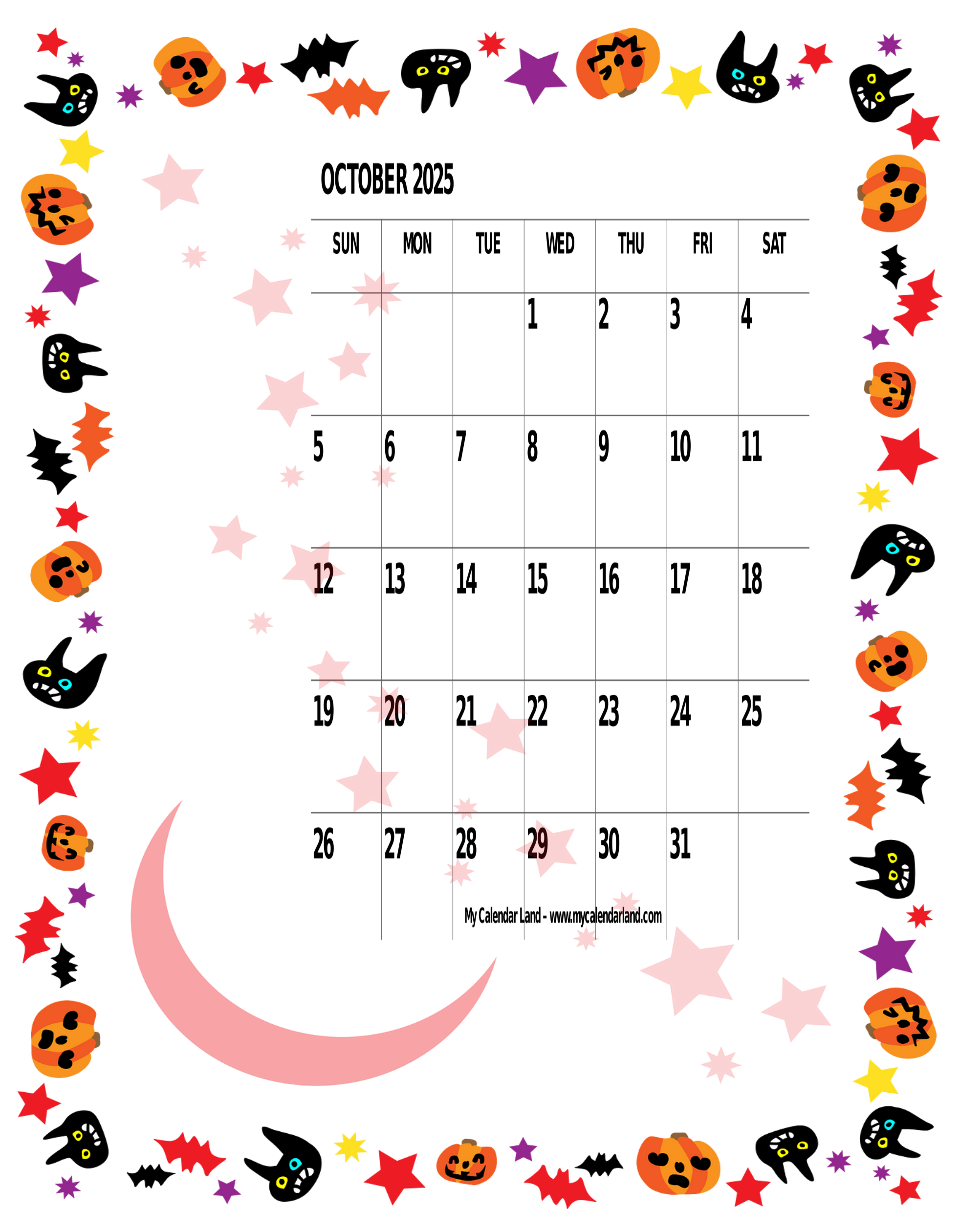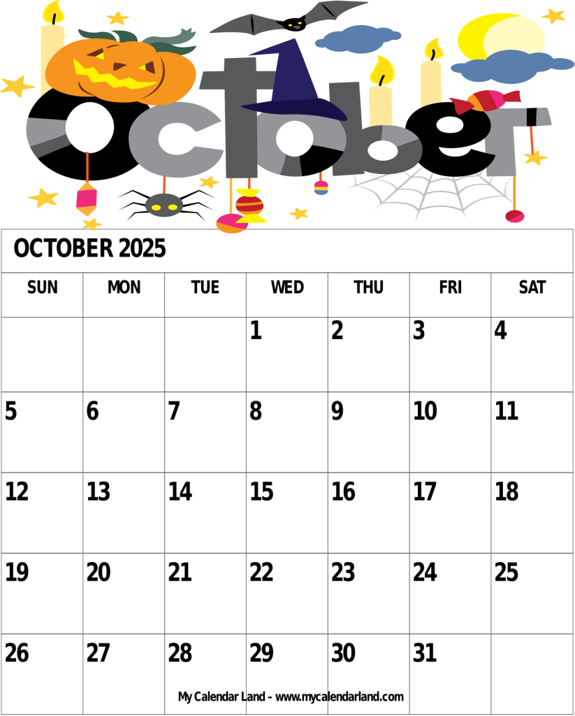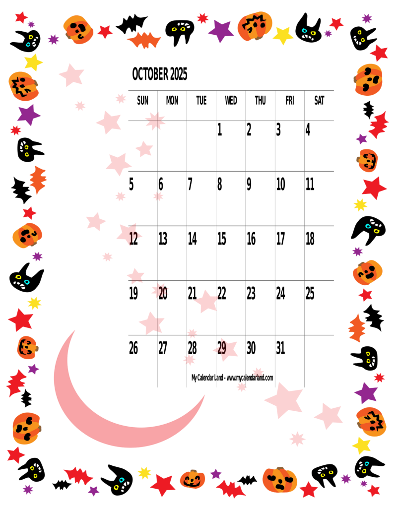 We made many free printable calendars for October 2025 with variety of themes, with Halloween as a major ‘holiday’ being the most represented of all. October as you already know, got the name from Latin word octo, meaning eight, because initially this was the eighth month in the calendar.