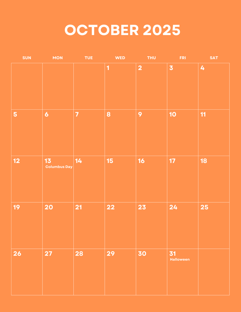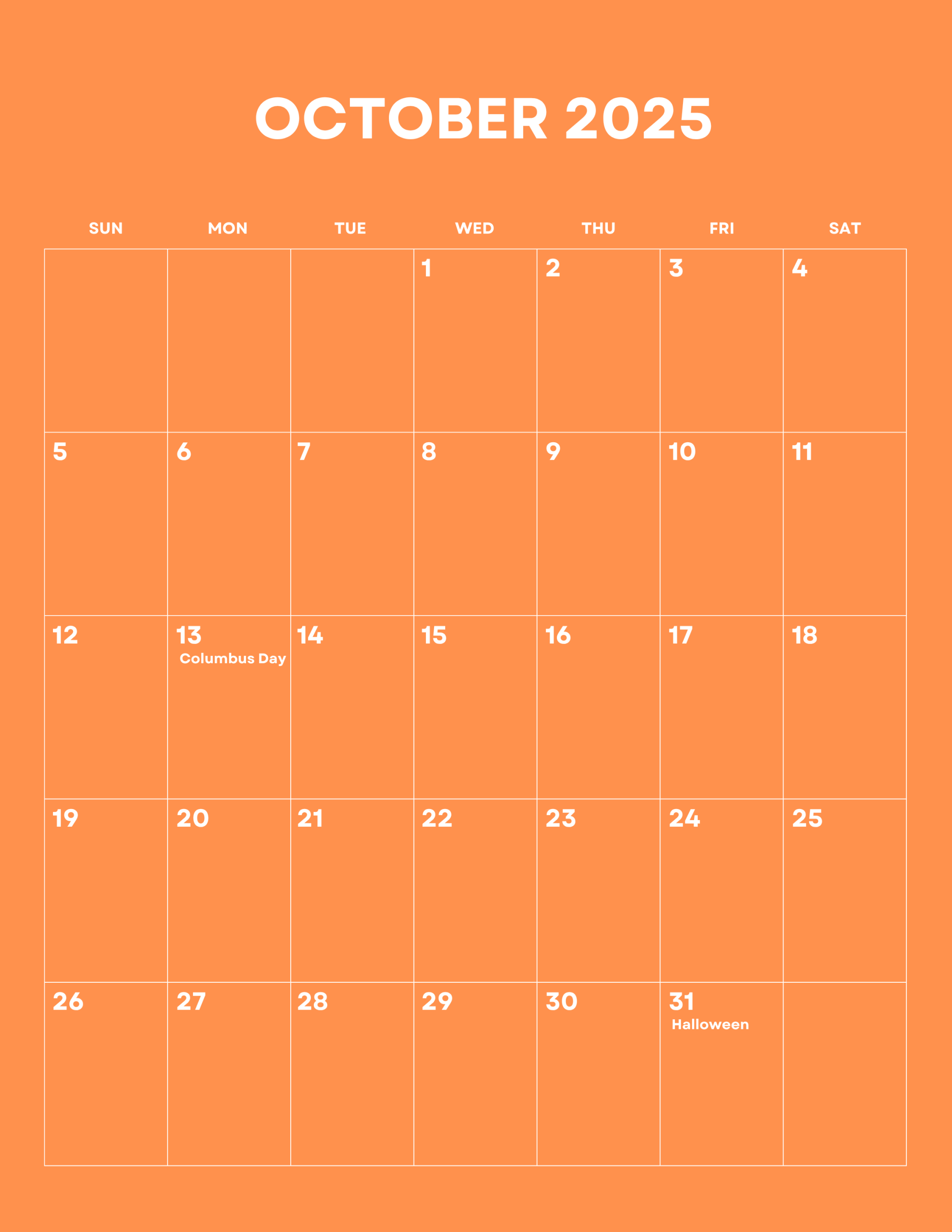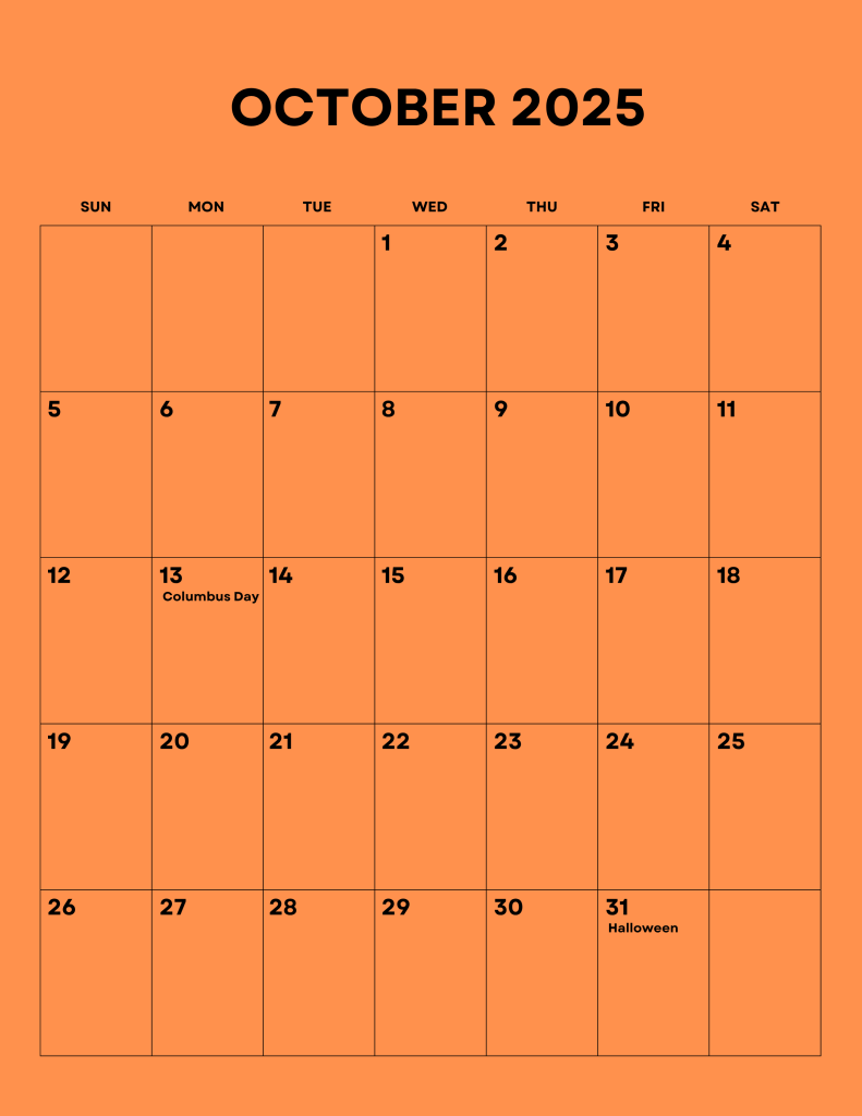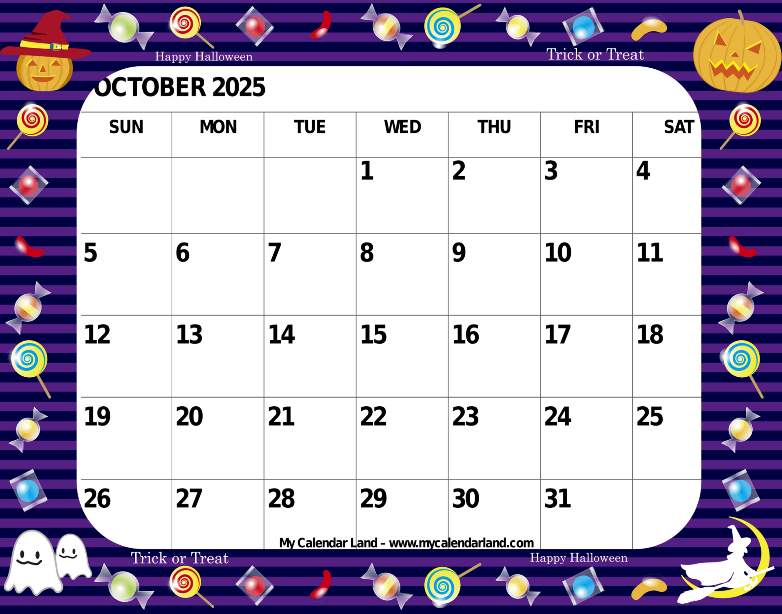 We made many free printable calendars for October 2025 with variety of themes, with Halloween as a major ‘holiday’ being the most represented of all. October as you already know, got the name from Latin word octo, meaning eight, because initially this was the eighth month in the calendar.