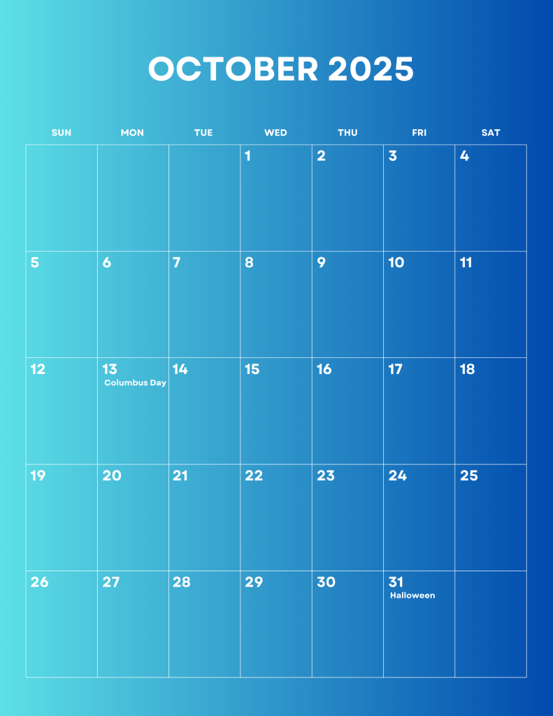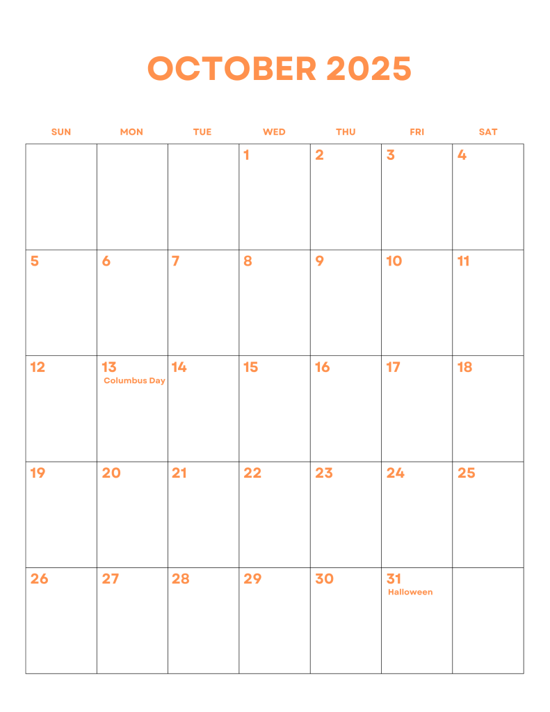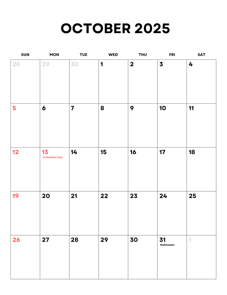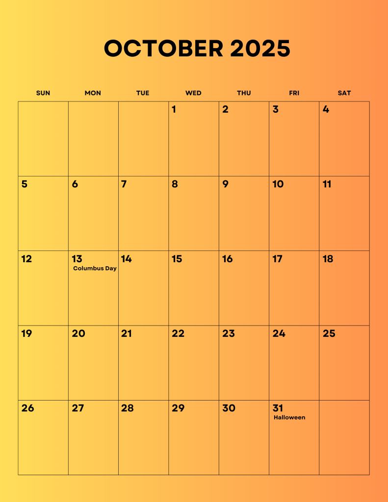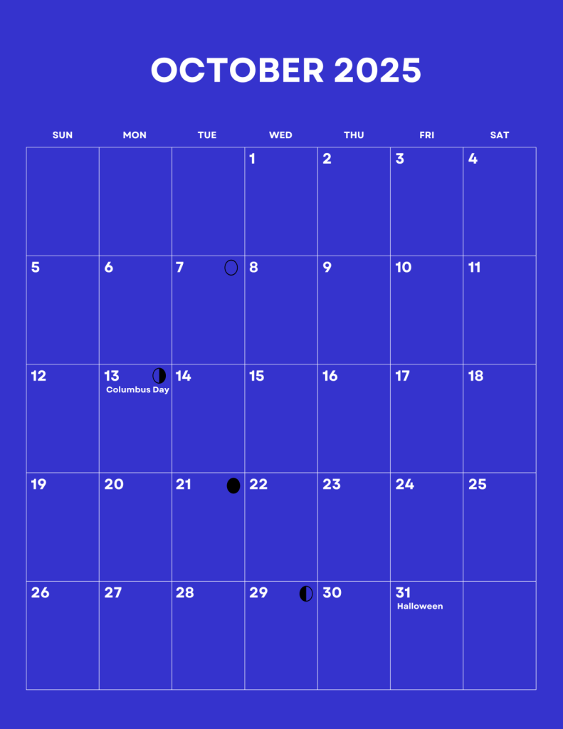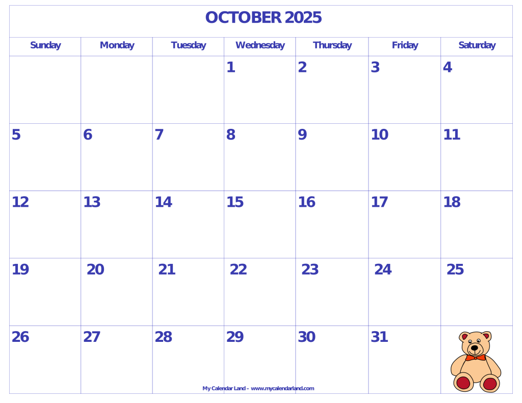 We made many free printable calendars for October 2025 with variety of themes, with Halloween as a major ‘holiday’ being the most represented of all. October as you already know, got the name from Latin word octo, meaning eight, because initially this was the eighth month in the calendar.
