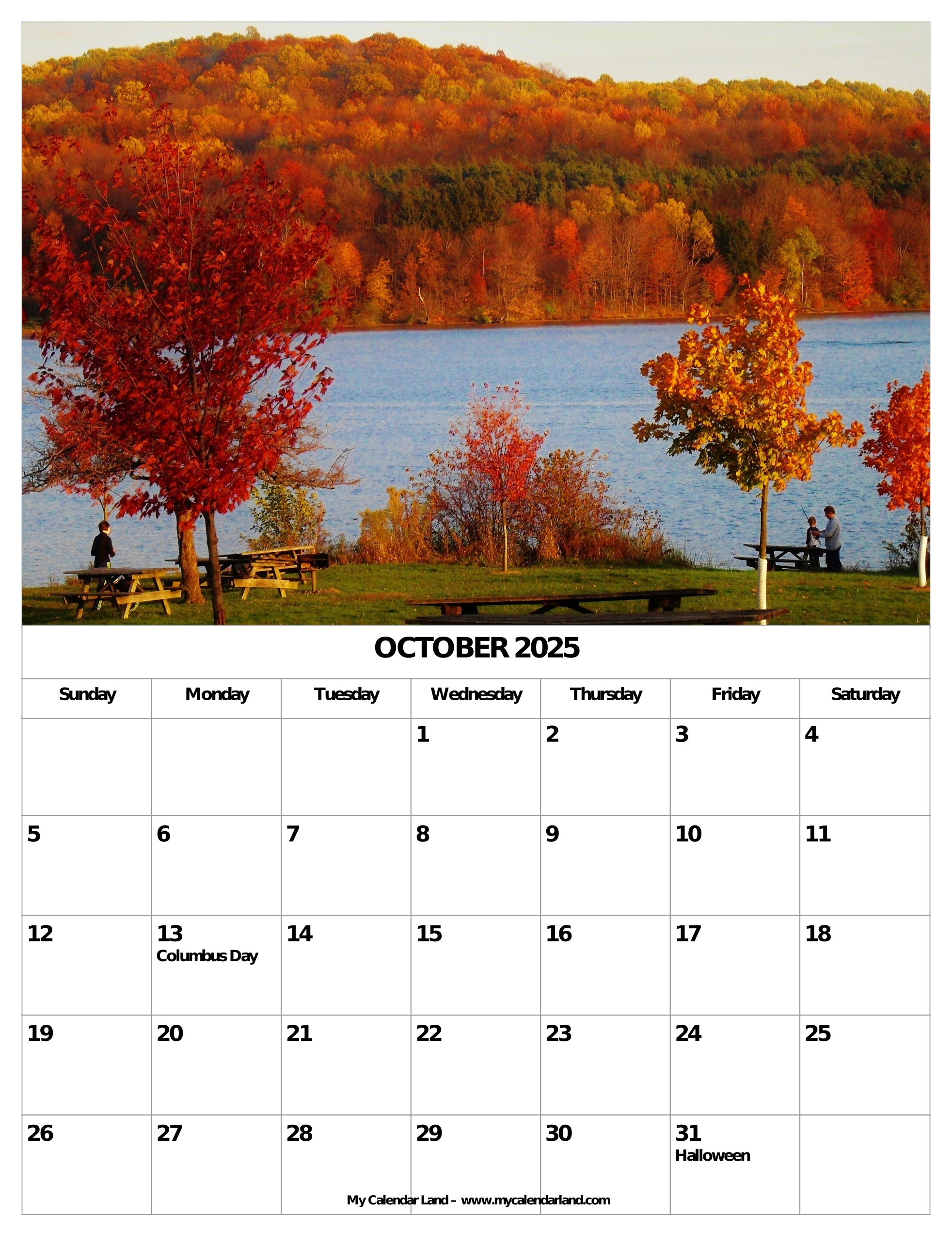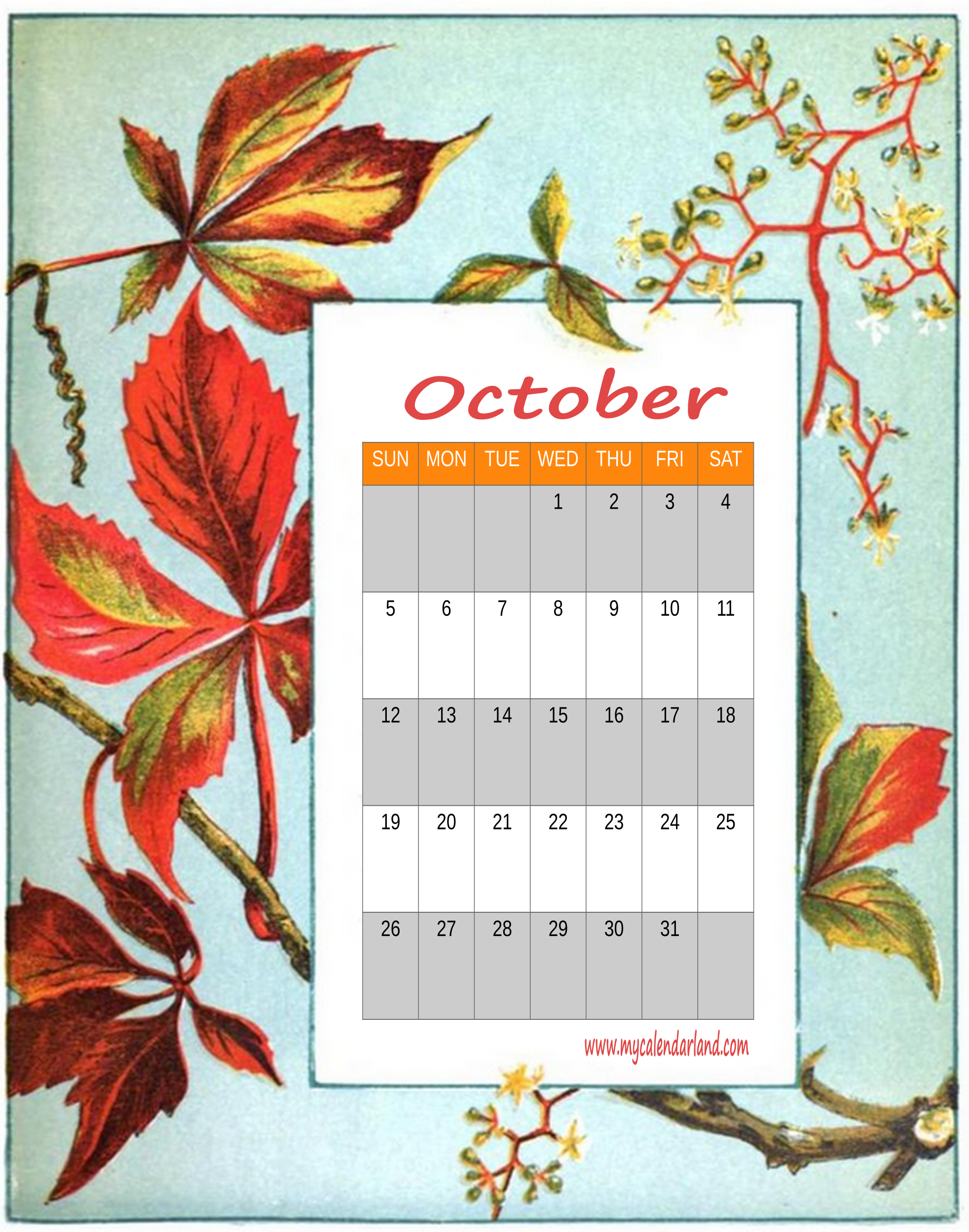 If we are lucky, in October we can admire the autumn in full beauty as presented on next printable monthly calendars. But there is a saying: warm October leads to cold February.