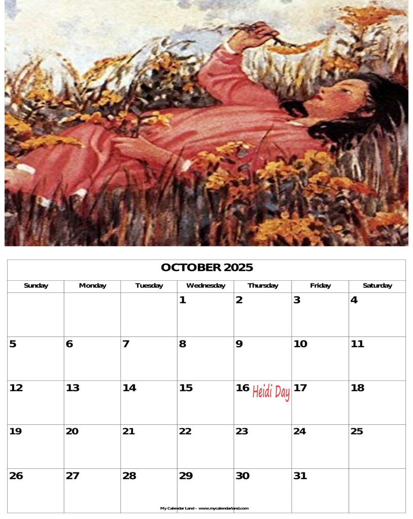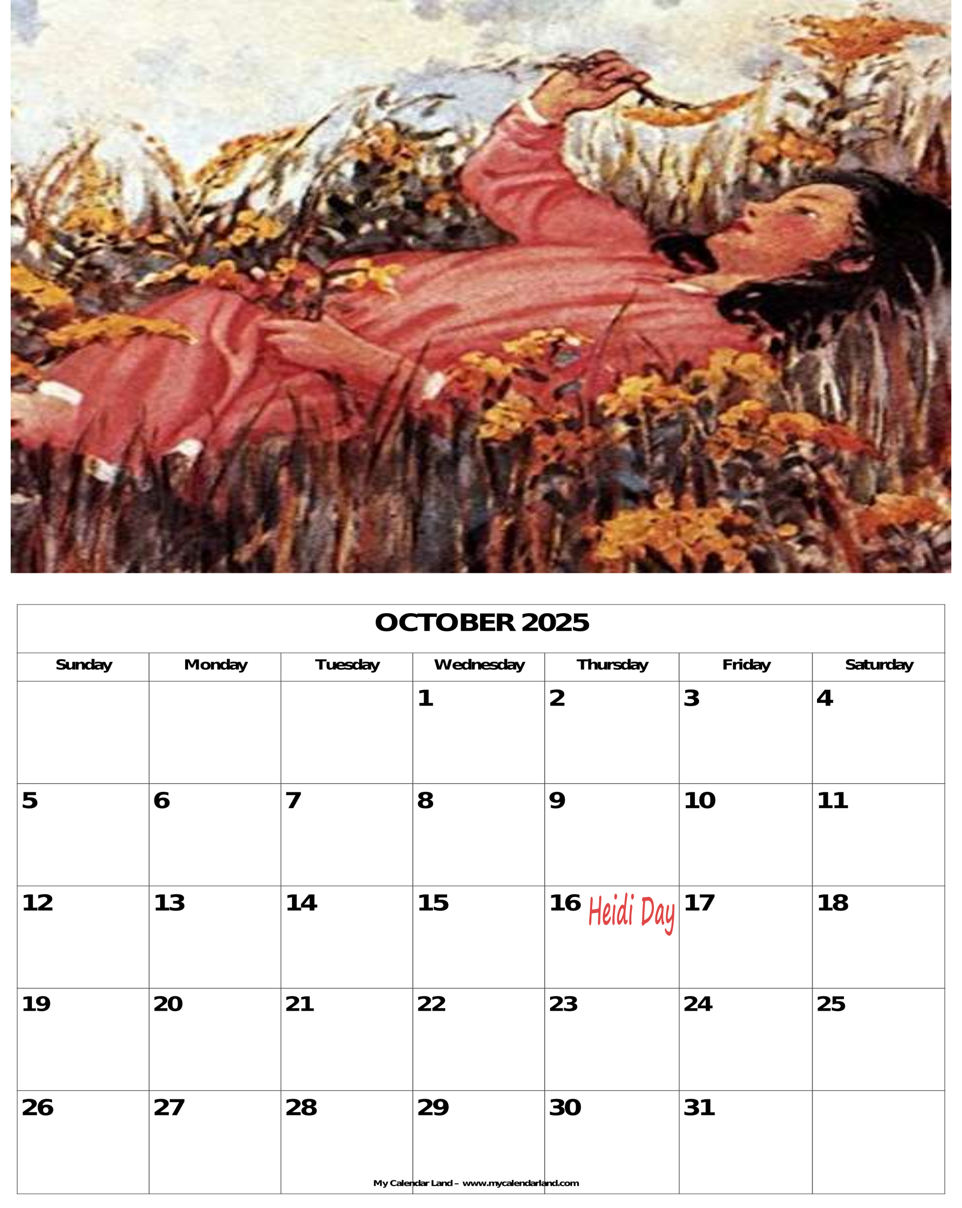 Next to October calendar with national days is a calendar with Catholic holidays in October. You’ll find many saints being celebrated in this month, some with very popular names. Is yours among them? Are you actually named after one of these saints?
